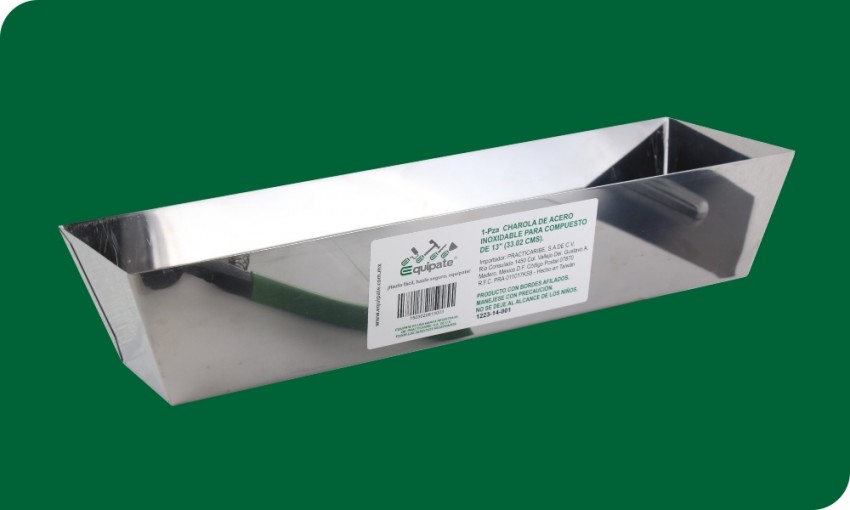 La charola de acero inoxidable es una herramienta la cual mejora el manejo del compuesto para que su aplicación sea aun más fácil para el instalador, y preferentemente que no se oxida este producto.