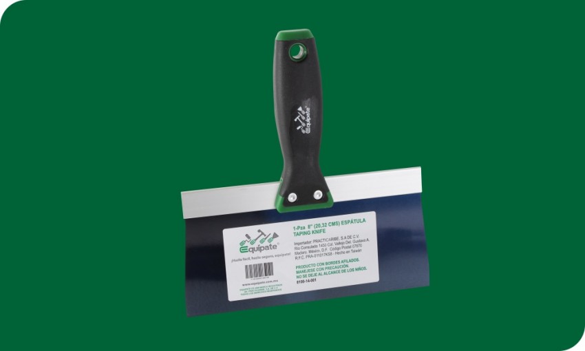 La espátula 8”, es una herramienta muy sencilla de uso popular. Esta formada por un mango ergonómico y con una hoja de acero al carbón.